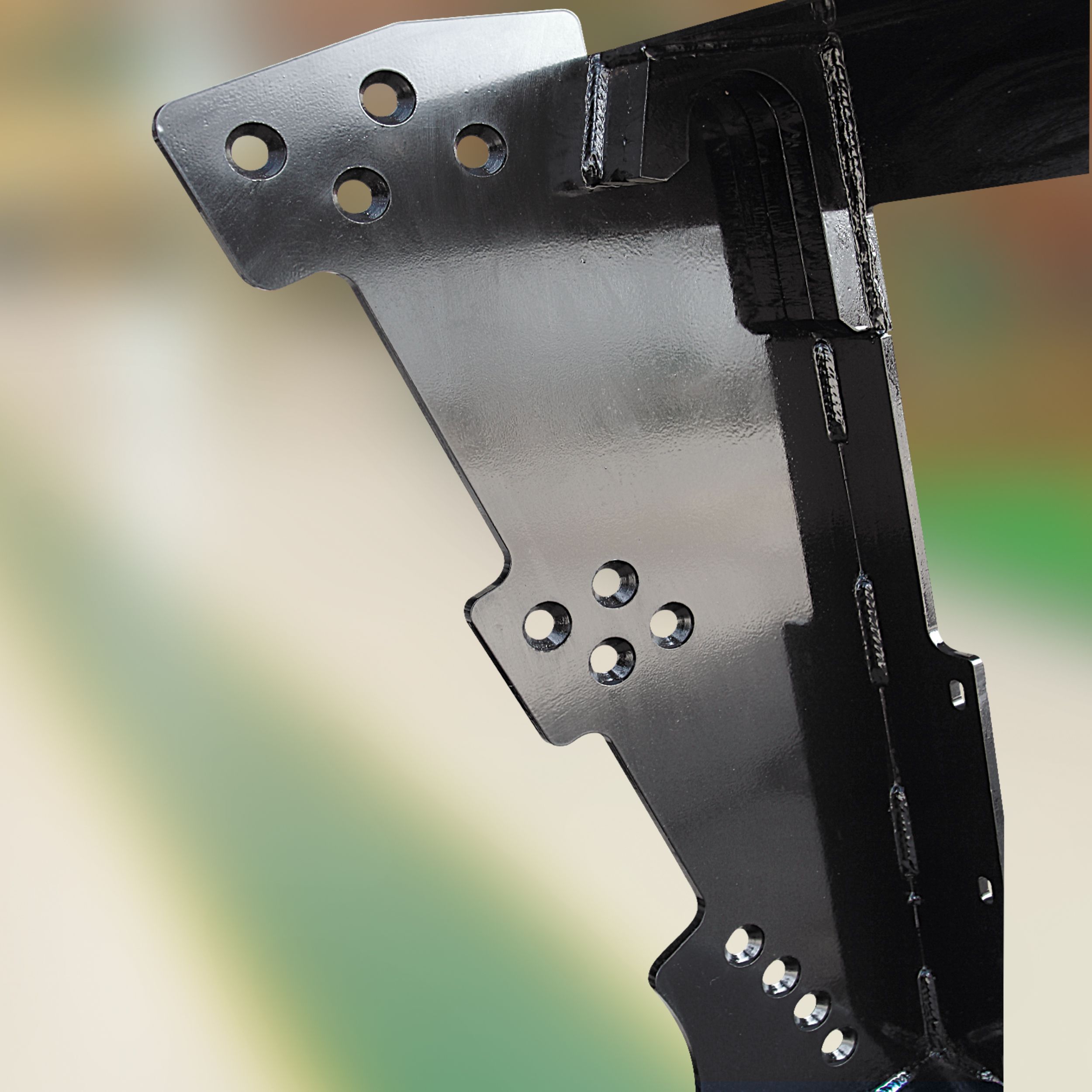 По краям жатки установлены увеличенные борта, позволяющие плавно и без потерь направлять высокорослую стебельную массу с крайних рядов в жатку.